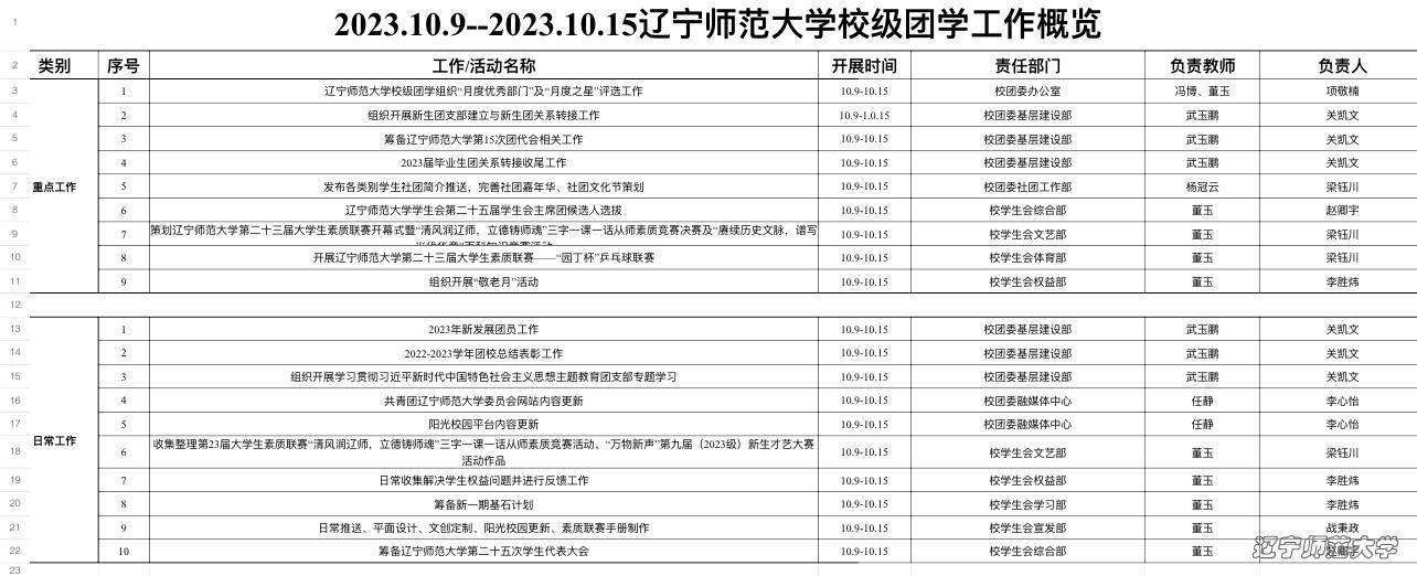 第六周辽宁师范大学团学组织工作概览(2023.10.9-2023.10.15)
