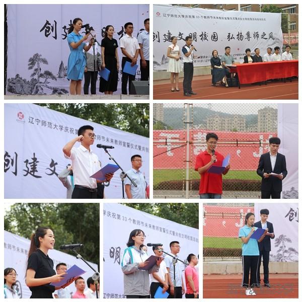 9月10日,我校在黄河路校区与西山湖校区同时举行了庆祝第33个教师节未来教师宣誓仪式暨共创文明校园活动启动仪式和“尊师爱生”服务一条街活动。校党委副书记李培山,教务处、学生处、党委宣传部、校团委相关领导,各学院党总支副书记、团委书记,教师代表应邀出席了此次活动。2017级全体师范专业新生参加了此次活动。